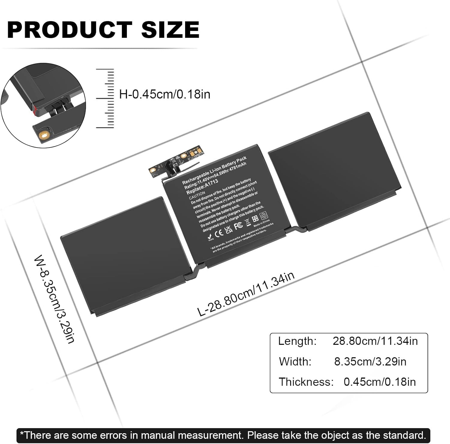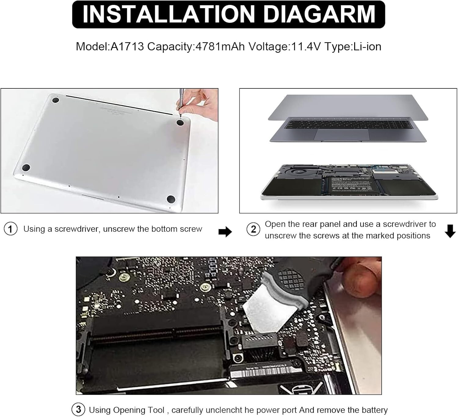 Produktinformationen "A1713 Akku Für Apple Macbook Pro 13"A1708 (2016 2017 Year) EMC 2978 3164 Laptop"
